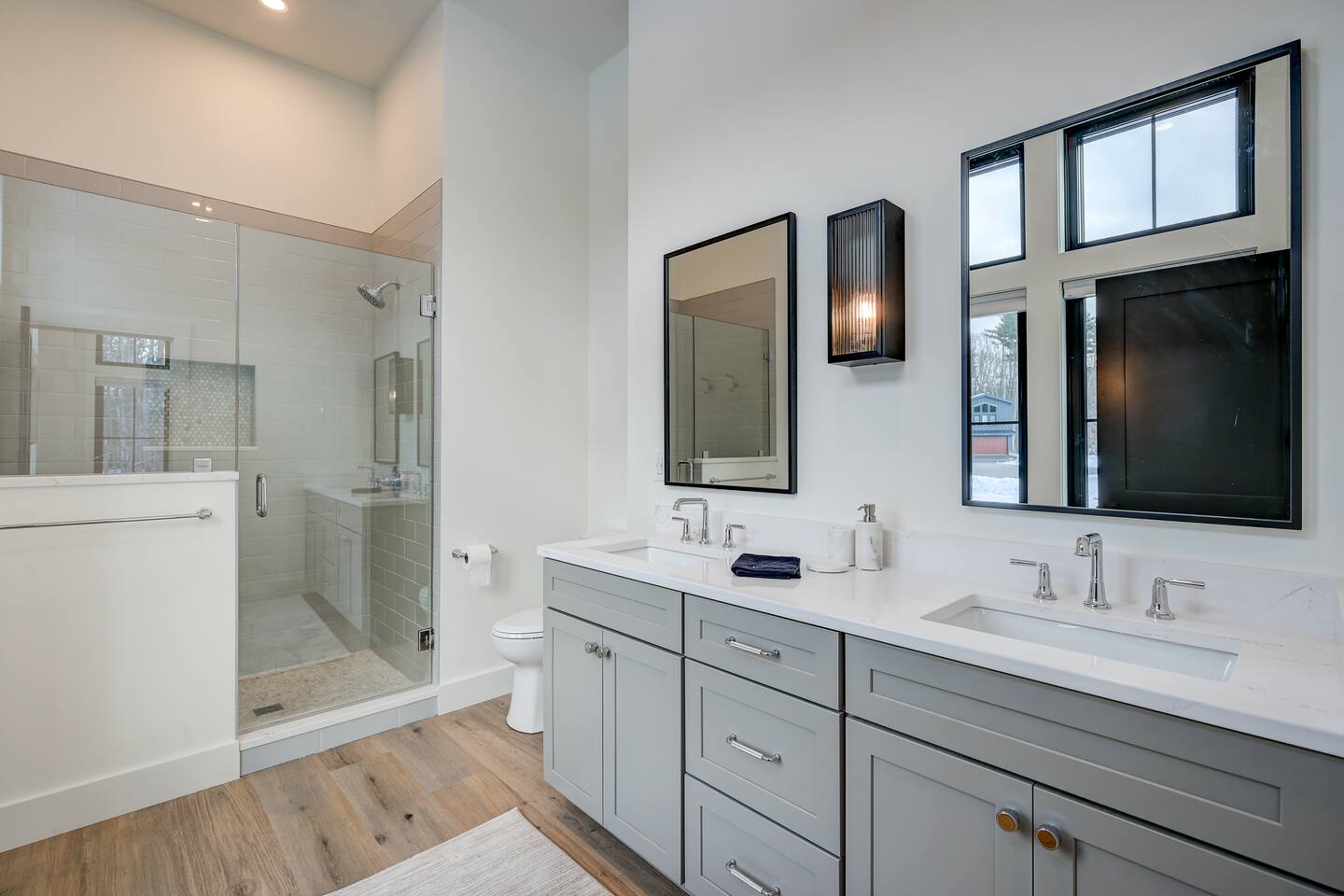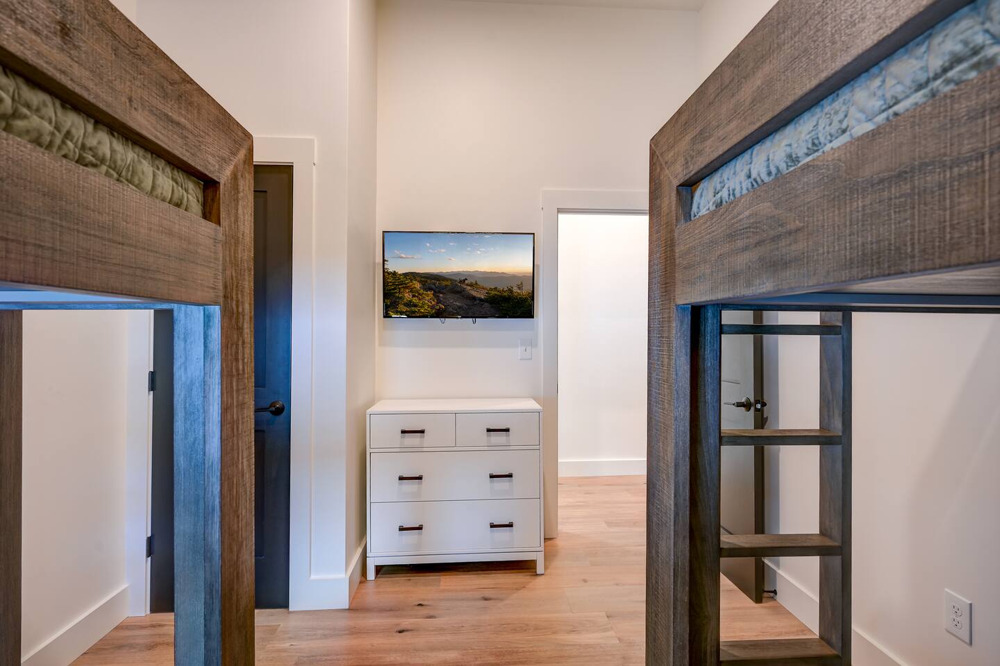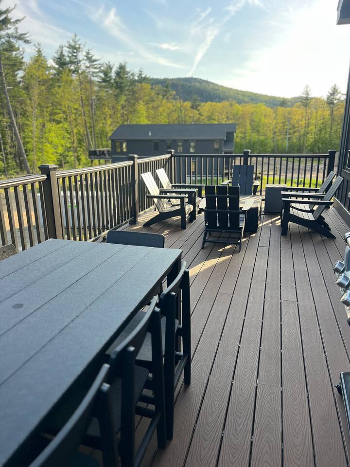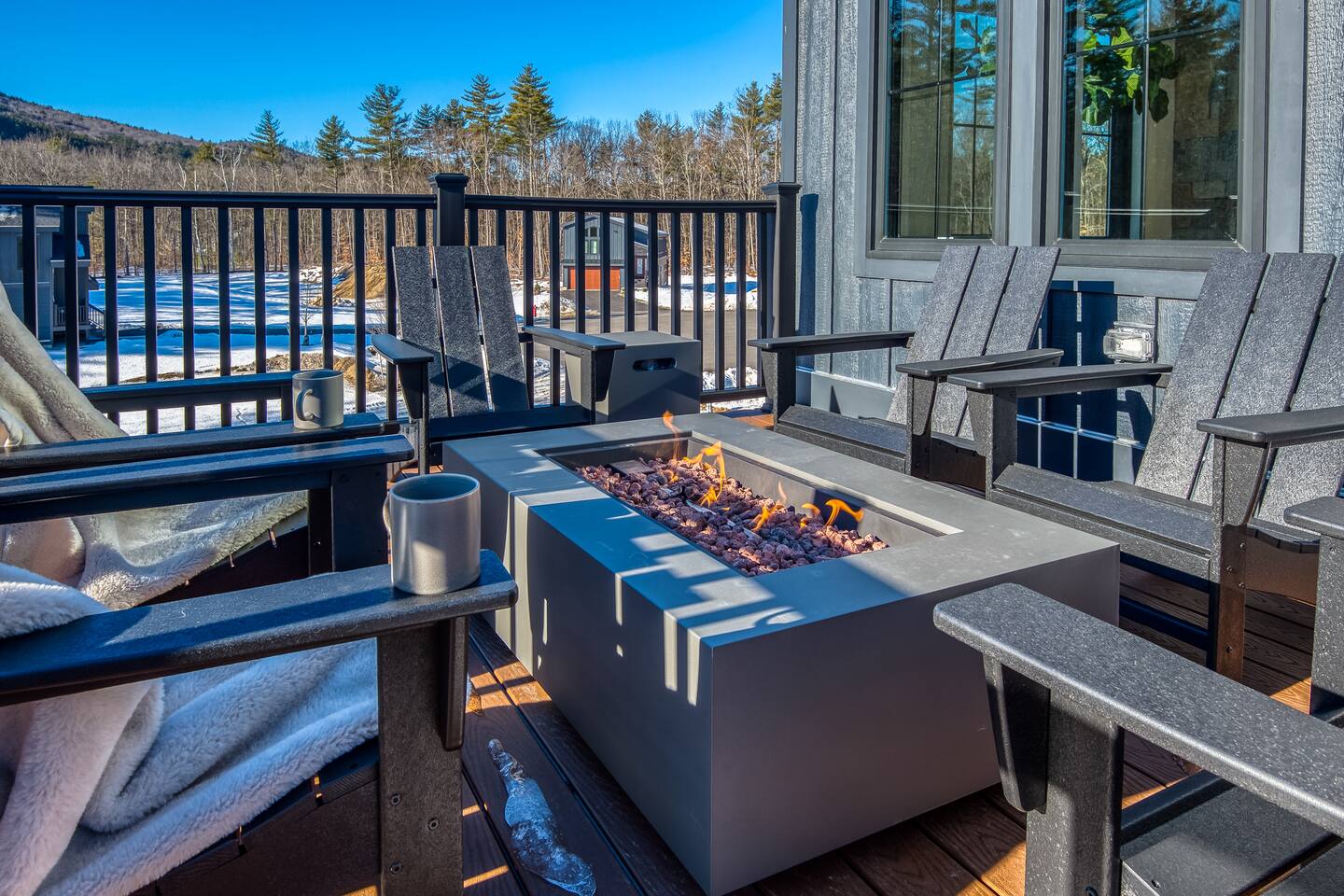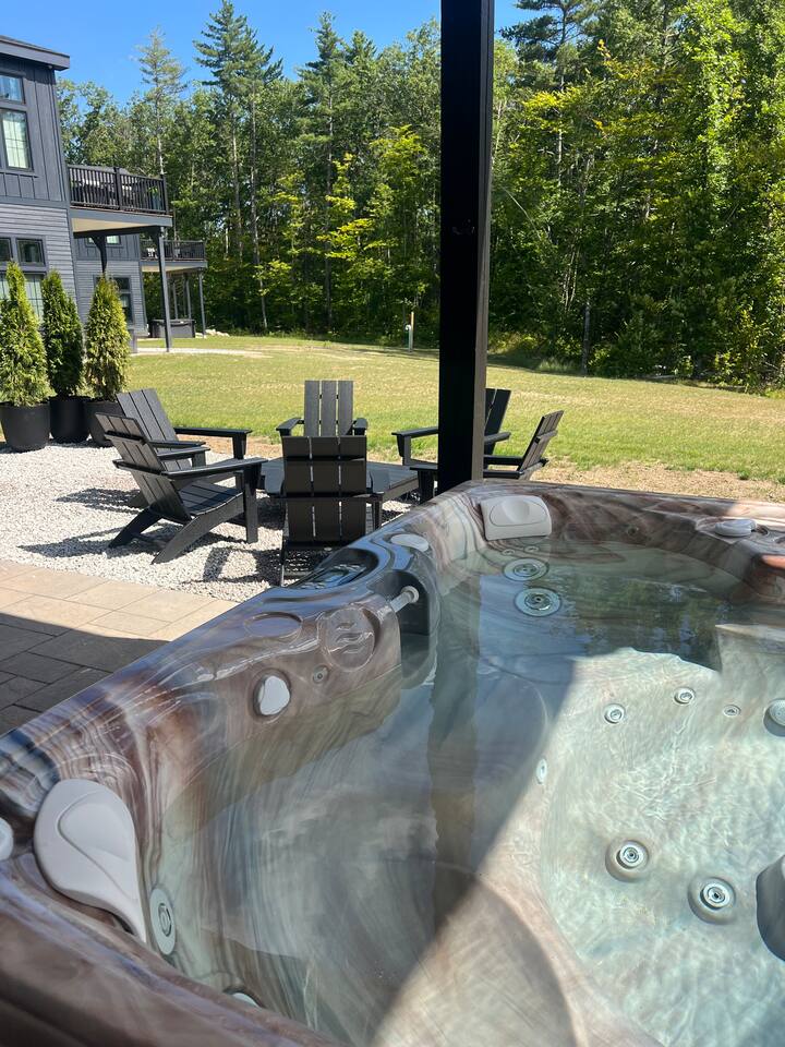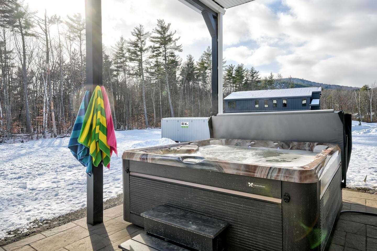 Whether you’re hitting the slopes, exploring the nearby trails and rivers or just looking to relax, this property offers you everything you need for an unforgettable experience. HOME FEATURES: ☀Sleeps 10-12 ☀2 Primary Bedrooms with ensuite baths ☀ Salt Water Hot tub ☀ 2 Firepits! ☀ Xbox, Ping Pong, Foosball ☀ Outdoor dining ☀ Fully Equipped Gourmet Kitchen ☀ BBQ Grill ☆ BEDROOMS ☆ Four beautifully designed bedrooms perfect for accommodating families or groups of all sizes. All sleeping areas are equipped with high end mattresses, pillows, sheeting and blackout shades for a restful nights sleep: Primary Bedroom 1: Located on the upper level, offers a king-sized bed and private ensuite bathroom with large walk in closet. Primary Bedroom2 : Located on the lower level, offers a king-sized bed with private ensuite bathroom and large walk in closet. Bedroom 3: Located on the lower lever, features a queen-sized bed with full-sized loft above, ideal for flexible sleeping arrangements. Bedroom 4: Located on the lower level, provides two sets of twin bunk beds perfect for kids or larger groups. ☆ LIVING AREAS ☆ The large open concept main level features a gourmet kitchen with custom cabinetry, 6 burner gas range, 12ft quartz island with seating for five, large pantry and beverage fridge. Fully stocked with a coffee maker, blender, air fryer, griddle and more. The spacious living room features 2 sofas and leather swivel accent chairs, floor to ceiling gas fireplace, cathedral ceilings and large TV for movie nights or downtime. Floor-to-ceiling windows provide beautiful natural light and views of Humphrey's Ledge and Bartlett Mountain. Watch The Conway Scenic Railroad pass by adding a nostalgic touch to your stay! A large dining area, laundry room and half bath complete the main level common spaces. In the lower level guests will discover 3 additional bedrooms, 2 full bathrooms and a second tv room outfitted with a pull-out couch for additional sleeping needs. Blackout shades make it the perfect spot for movie nights or gaming on the Xbox. ☆HEATED GARAGE & MUDROOM SPACES☆ The heated garage with custom ski storage and boot and glove dryers is the perfect space for keeping your gear warm and ready to go. The addition of a large ping pong table makes this space a fun game room. The mudroom space located just off the garage features in floor radiant heat and plenty of storage for coats and additional gear. ☆ OUTSIDE SPACES ☆ The spacious deck is equipped with a Weber grill, dining table for six and separate lounge area where you and your guest can enjoy the large gas fire pit. The patio is the perfect spot to enjoy the 7 person salt water hot tub while sitting around a wood burning fire! ☆ NEARBY ATTRACTIONS ☆ Located in the heart of the White Mountains, this home is close to some of New Hampshire’s best attractions: Story Land (4 miles): A family-friendly amusement park perfect for kids. Cranmore Mountain Resort (7 miles): Skiing, snowboarding, and summer mountain activities. North Conway Village (5 miles): Shopping, dining, and the Conway Scenic Railroad. Diana’s Baths (4 miles): Picturesque waterfalls and short hiking trails. Outdoor Fun: Mt. Washington Valley XC ski trail system out your back door! Walking trails to the East Branch and Saco Rivers for swimming, fishing, or scenic walks.